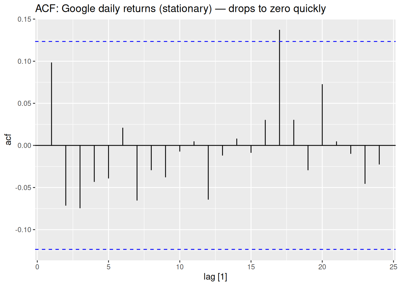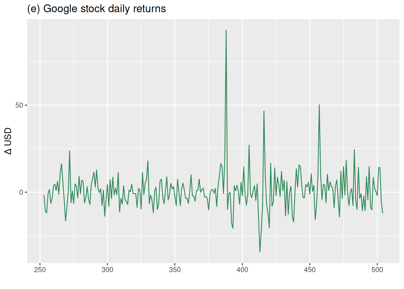 The daily return is simply today’s price minus yesterday’s price — the change between consecutive observations. This operation is called differencing, and it is how we stabilize the mean of a non-stationary series.
