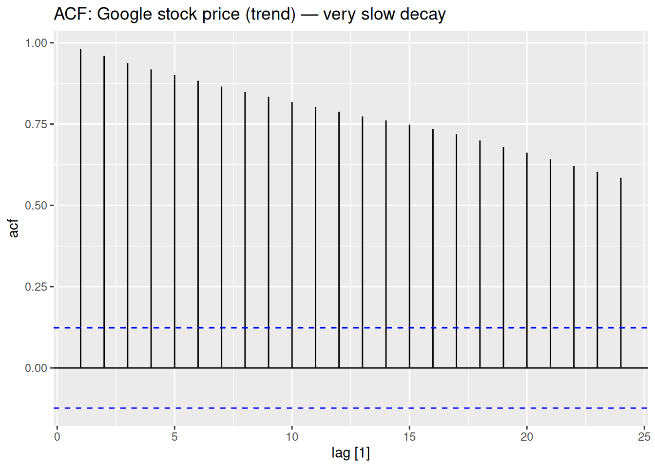 This gives us another way to detect non-stationarity — and, as we will see, it also tells us about the structure of the model to fit.