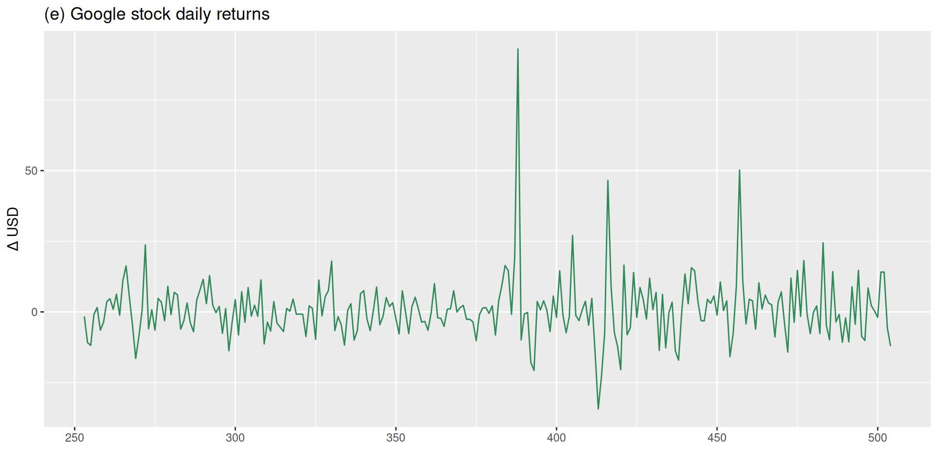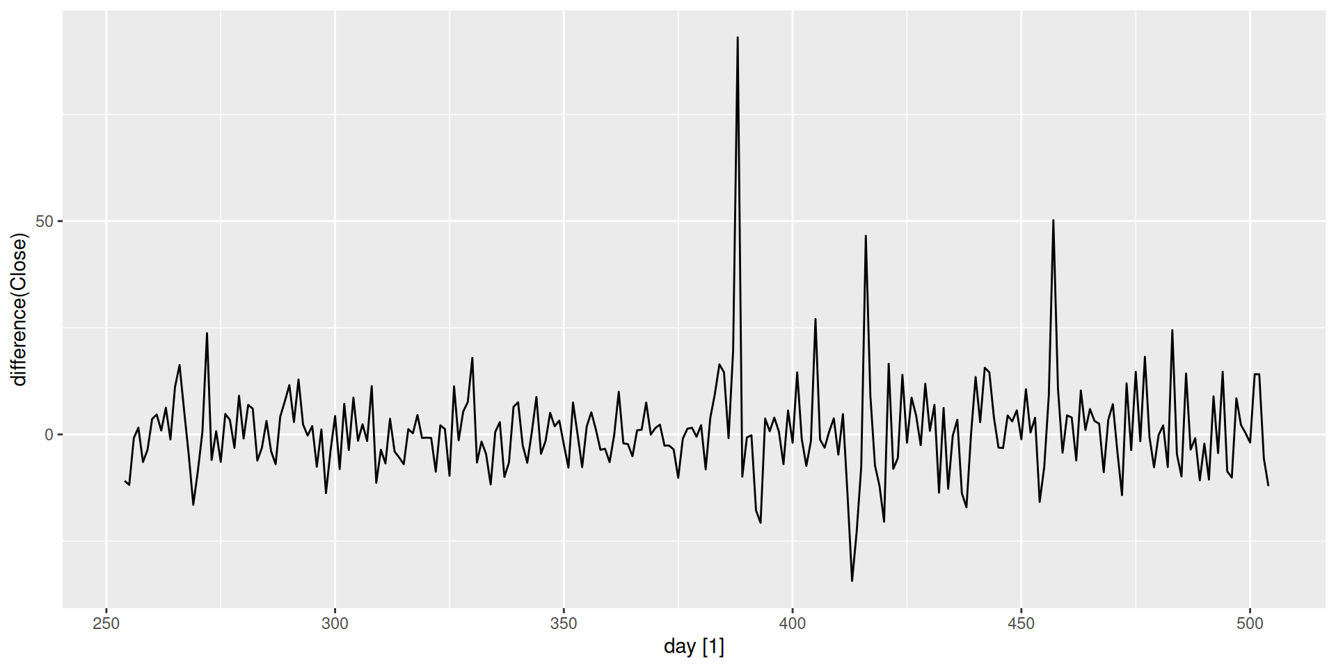 The daily return is simply today’s price minus yesterday’s price — the change between consecutive observations. This operation is called differencing, and it is how we stabilize the mean of a non-stationary series.