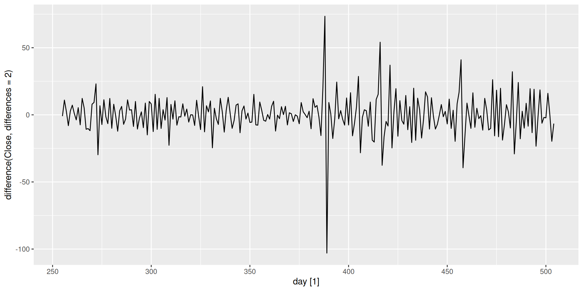 Sometimes the first-differenced series is still non-stationary. We can difference again: