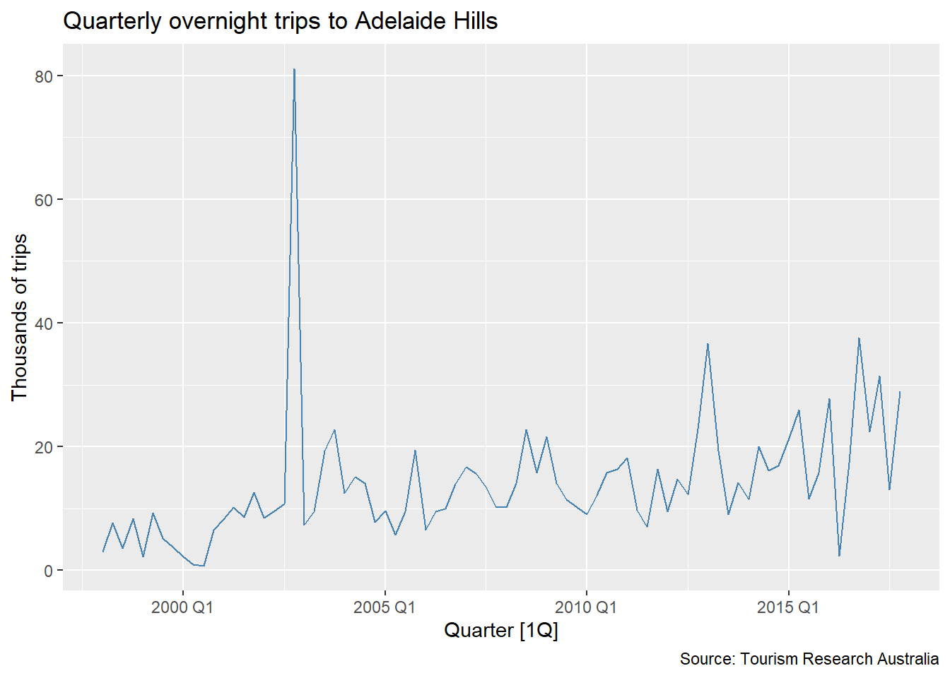 fill_gaps() makes the missing periods explicit — they now appear as NA rows in the tsibble rather than simply not existing.