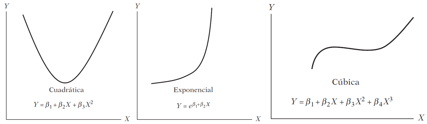 We established earlier that linear in the parameters does not mean a straight line. Three practically useful forms: